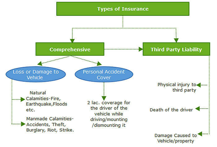 This type of insurance is for scooters, bikes & features are similar to that of four-wheeler insurance.